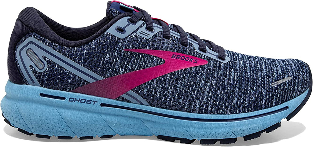 Women's Brooks Ghost 14, Peacoat/Blissful Blue/Fuchsia, 8 B Medium