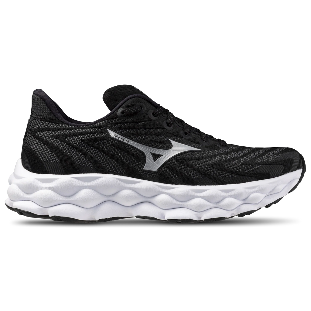 Women's Mizuno Wave Sky 8, Black/Silver, 12 B Medium